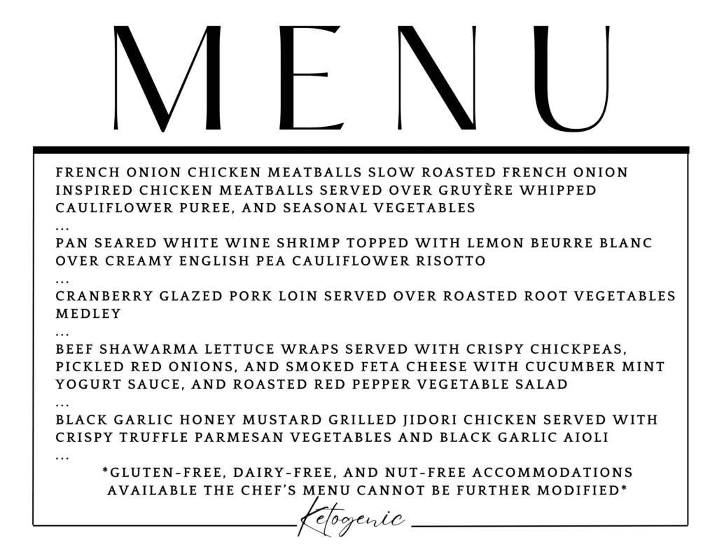 Chef Brett curates a weekly fresh-in-season gourmet meal plan, collaborating with our nutritionist, to meet your optimal health goals. The Keto Meal Plan is specifically designed for individuals looking for a higher fat & protein diet with minimal to no carbs.