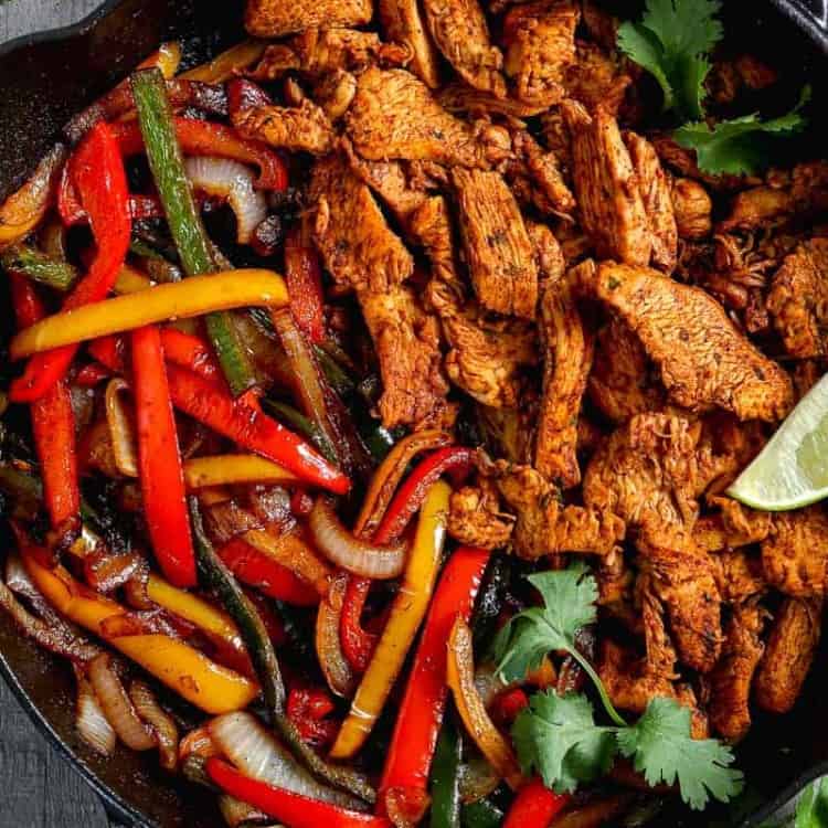 Organic Chicken Molè fajitas served with Spanish cauliflower rice with sautéed peppers & onions
