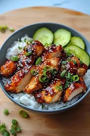 Sticky Gochujang honey organic chicken served with kimchi fried rice, steamed vegetables, and a side of garlic chili